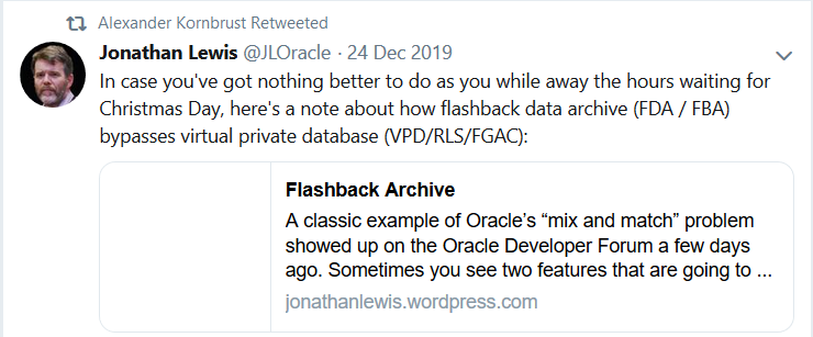 At almost every Oracle Security Master Class I teach I find multiple students wondering why Oracle doesn't "just fix" some of the more obvious security flaws and other anomalies and I explain that Oracle puts great value in backward compatibility: