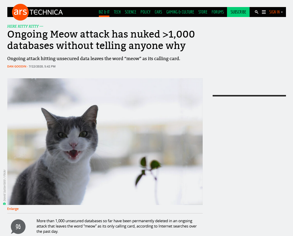 An example of one of those default configurations you will want to override to secure your database, one that is as clear as the code above: