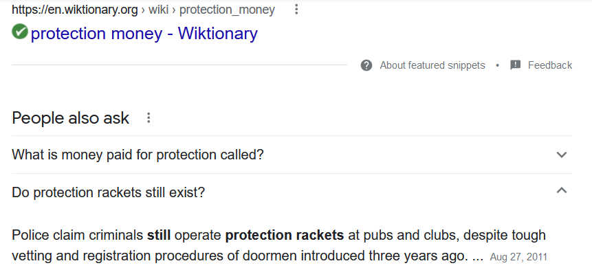 Some people apparently wonder whether protection rackets still exist.